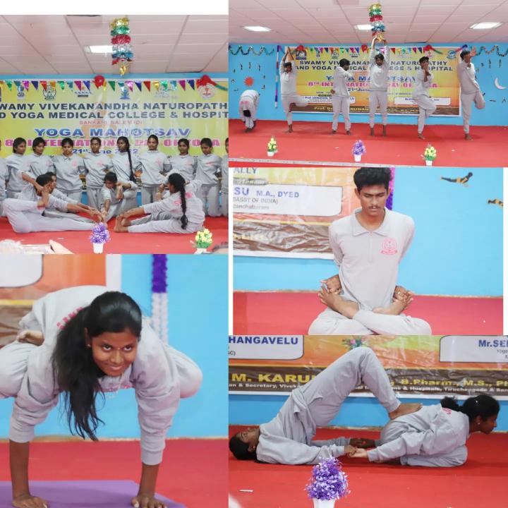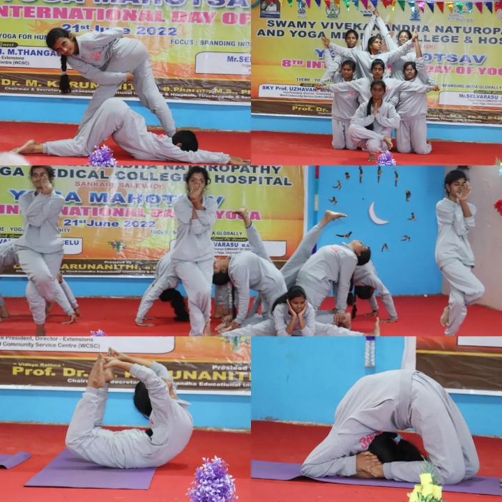 Yoga Day Protocol Practice, Cultural Programme and Yoga Competition conducted in Swamy Vivekanandha Naturopathy and Yoga Medical College Salem on behalf of the celebration of International Yoga Day on 21/6/2022