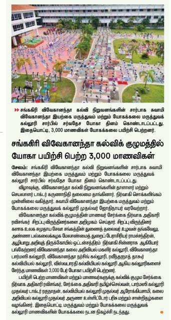 VIDEO - 21/6/22 - Live Mass Yoga performance conducted in Swamy Vivekanandha Naturopathy and Yoga Medical College Salem on behalf of International Yoga Day 2022
