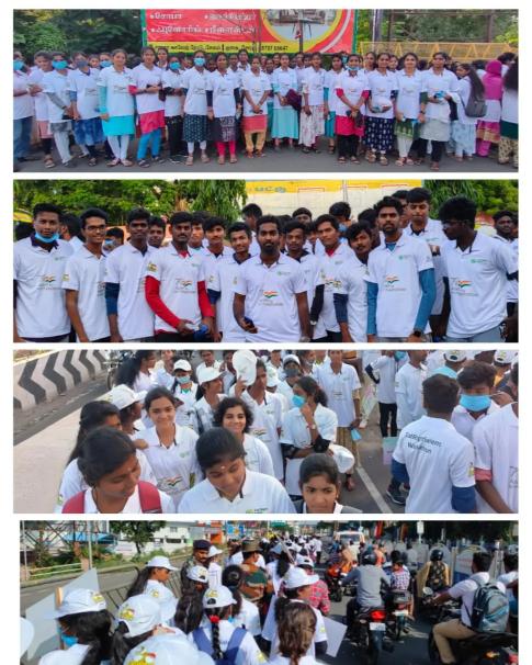Students of Swamy Vivekananda Naturopathy and Yoga Medical College participated in "Eat Right Mela Walkathon 2022" and completed 7.5km to create awareness about Importance of Healthy Food and Food safety on 16/07/2022 conducted by Tamil Nadu Fodd Safety Department, Salem.