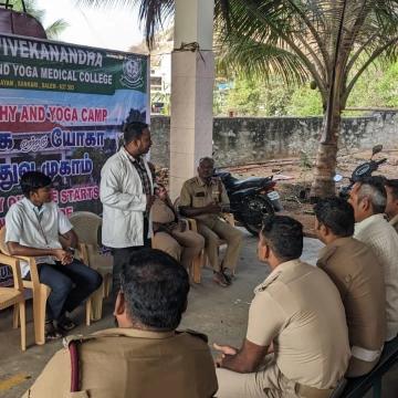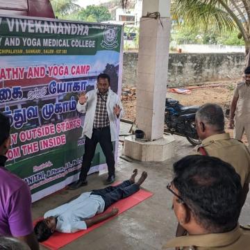 Swamy Vivekanandha Naturopathy and Yoga Medical College and Hospital conducted Free Naturopathy and Yoga Medical Camp at Tiruchangodu fire service station for around 30 beneficiaries