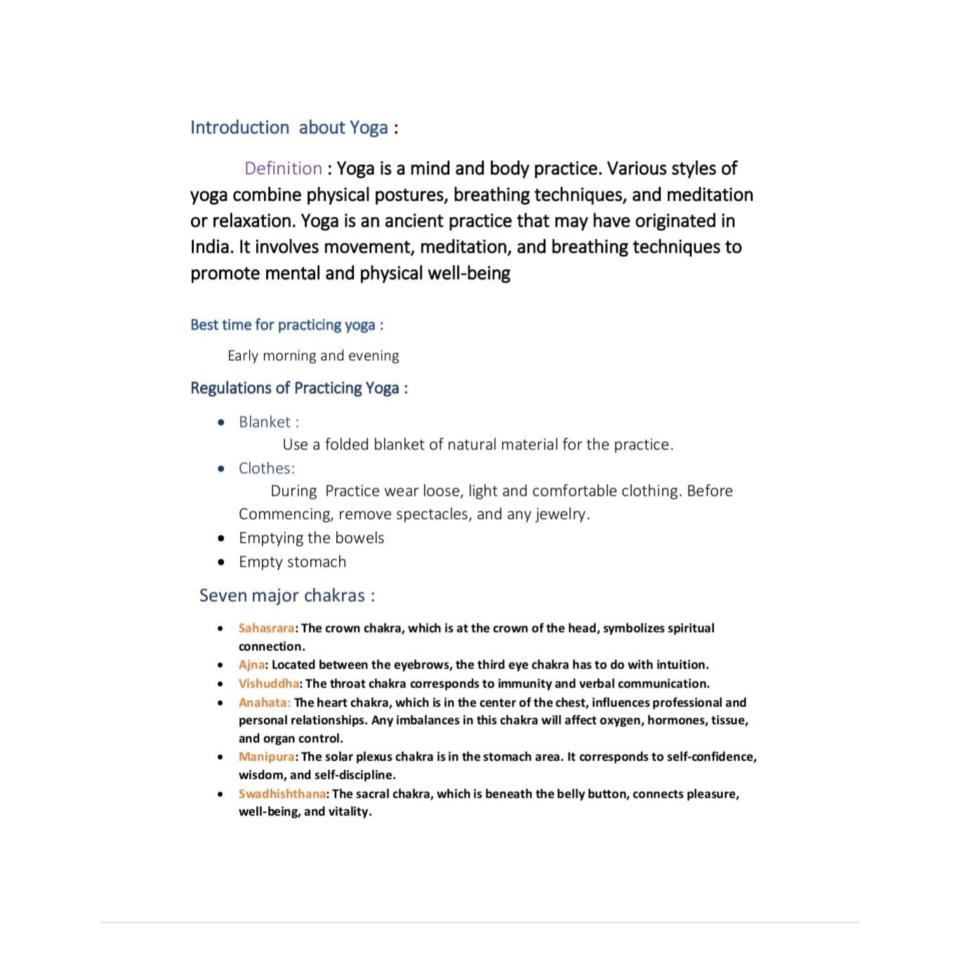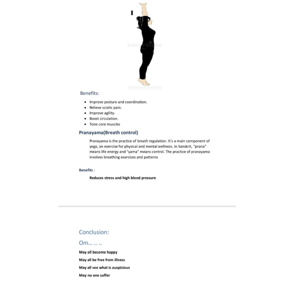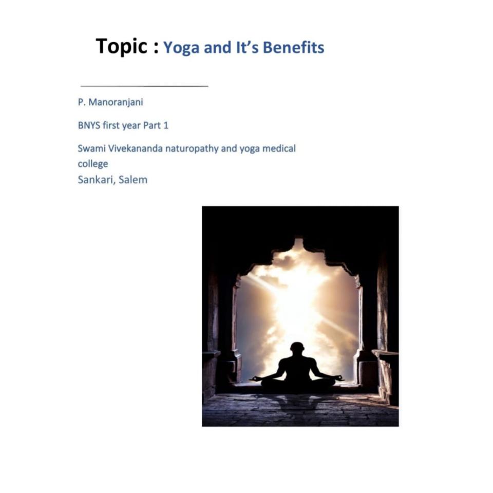 Article About Yoga and It's Benefits by our Student P.Manoranjani, I- BNYS Part 1 ,SVNYMC,Sankagiri, Salem.