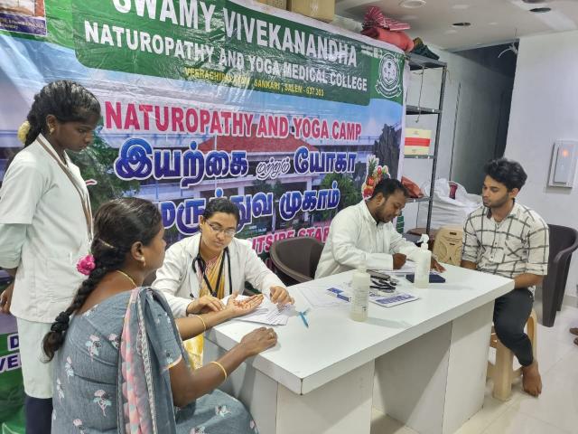 Swamy Vivekanandha Naturopathy and Yoga Medical college & Hospital Sankari, salem conducted Naturopathy and Yoga Camp at CD Rotary Hall, Erode on 16.07.2023(4.00pm to 10.30pm).Around 70 beneficiaries were consulted and given awareness regarding Naturopathy and Yogic way of treatments