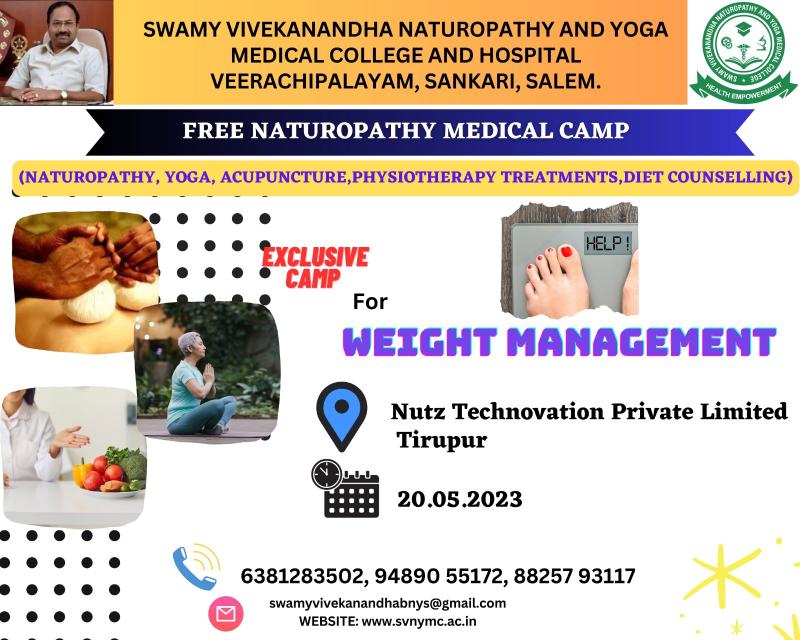 A Mega Naturopathy Medical Camp is scheduled to be conducted by Swamy Vivekanandha Naturopathy and Yoga Medical College for 5 Days in Our SVNYMC Hospital, Sankagiri, Salem