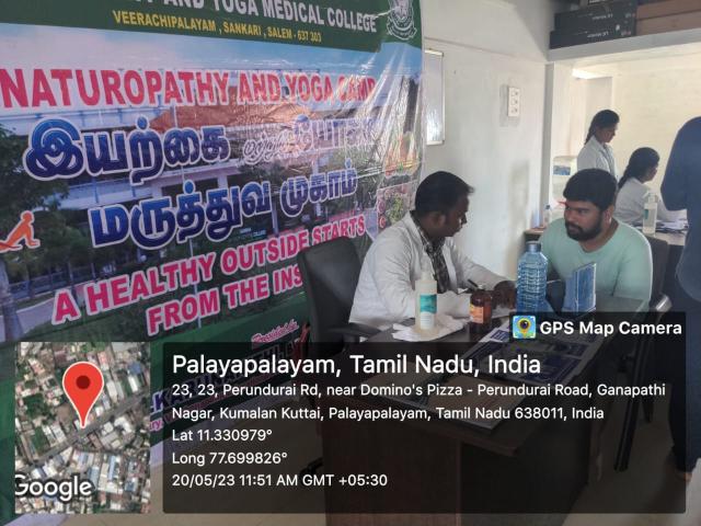 Swamy Vivekanandha Naturopathy and Yoga Medical College and Hospital, sangakiri, salem conducted Naturopathy and Yoga Medical camp at JCI Galexy CD Rotary Hall, Erode on 8.6.2023. Around 50 beneficiaries were consulted and treated.