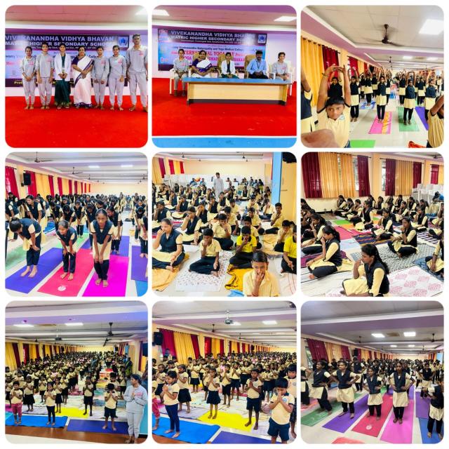 Swamy Vivekanandha Naturopathy & Yoga Medical College, Sankagiri, Salem celebrated International Yoga day 2023 by conducting Mass Yoga Protocol practice session for the students and Faculties of Vivekanandha Vidhya Bhavan Matric Higher Secondary School, Tiruchengode.