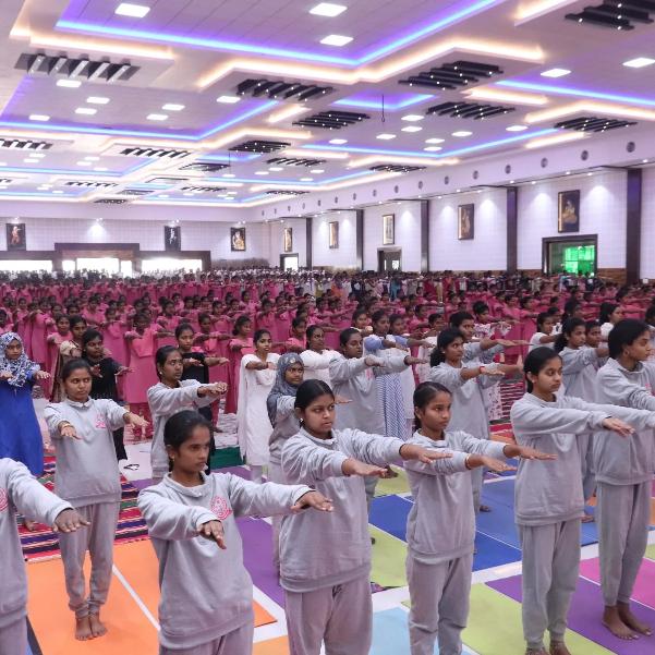 Our 159 students completed 101 rounds of Surya Namaskar in 18 minutes 35 seconds. Kudos to our enthusiastic students for their wonderful achievement".