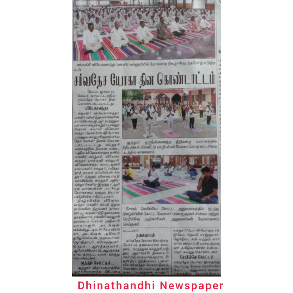 On the occasion of 9th International Yoga day, Swamy Vivekanandha Naturopathy and Yoga Medical College Salem conducted various Yoga related competitions, viz,Yogic kriyas,Mantra chanting,Quiz and Face painting.The students of SVNYMC participated enthusiastically.