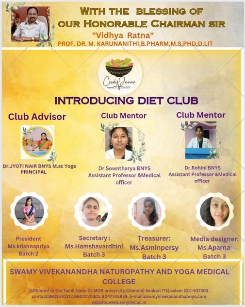 Swamy Vivekanandha Naturopathy and Yoga Medical College Students have introduced a DIET CLUB