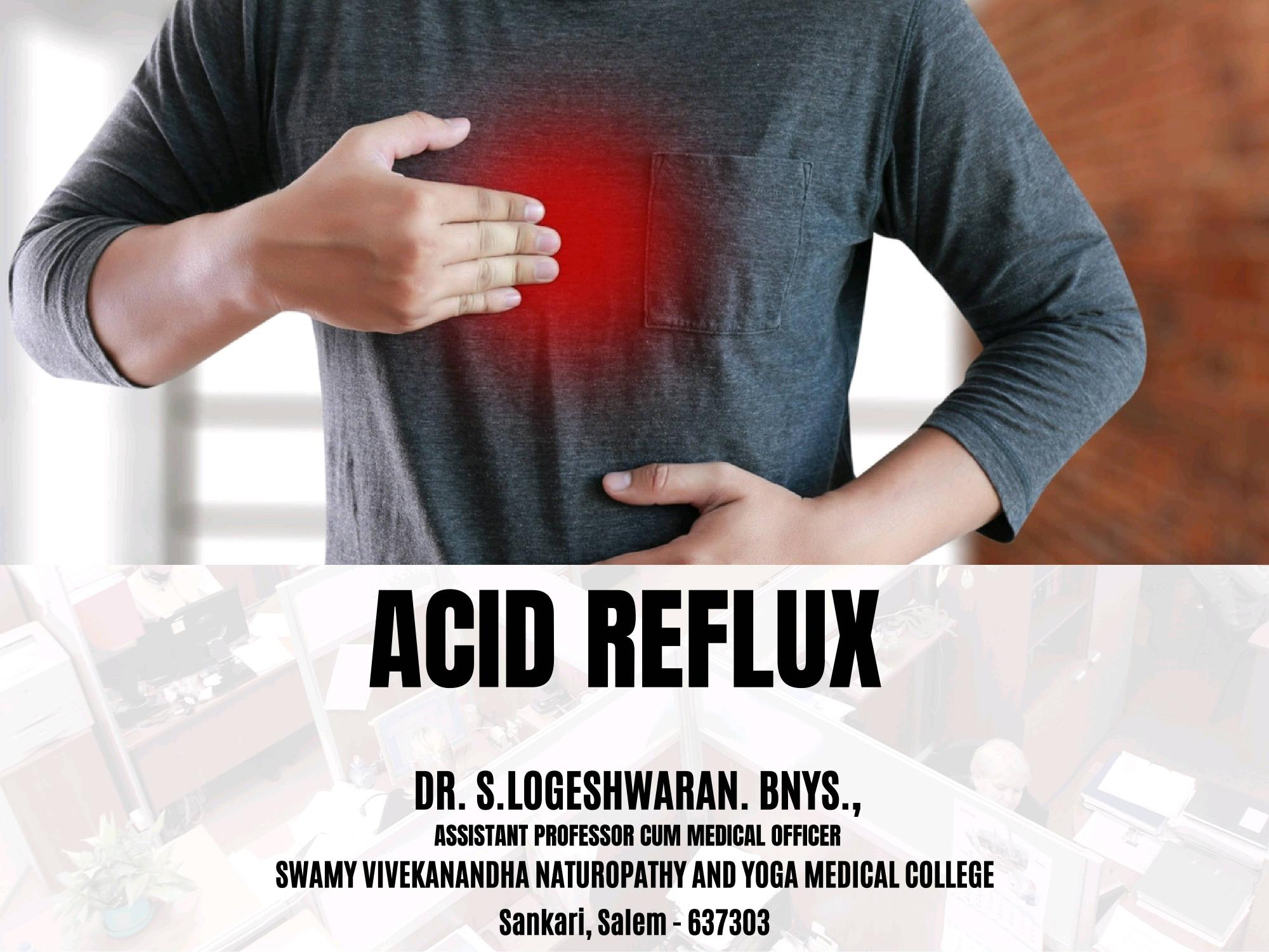 Take a look into this article about Acid Reflux by Dr.Logeshwaran.S , Assistant professor cum Medical Officer, Swamy Vivekanandha Naturopathy and Yoga Medical College, Sankagiri, Salem (dt)