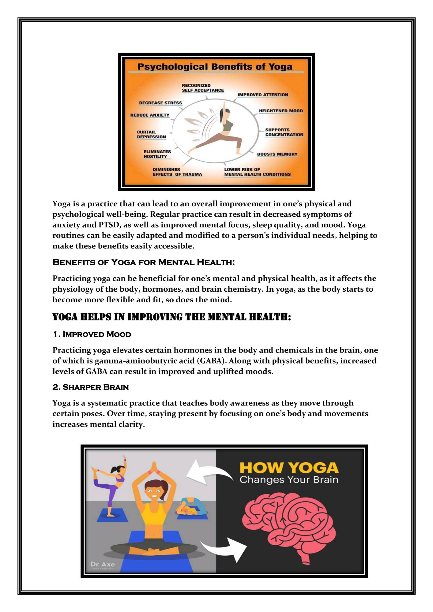 Article about Yoga for Mental Health by Dr. Anusuya U. S , Assistant professor cum Medical Officer at Swamy Vivekanandha naturopathy and yoga medical college sankari, salem(dt)