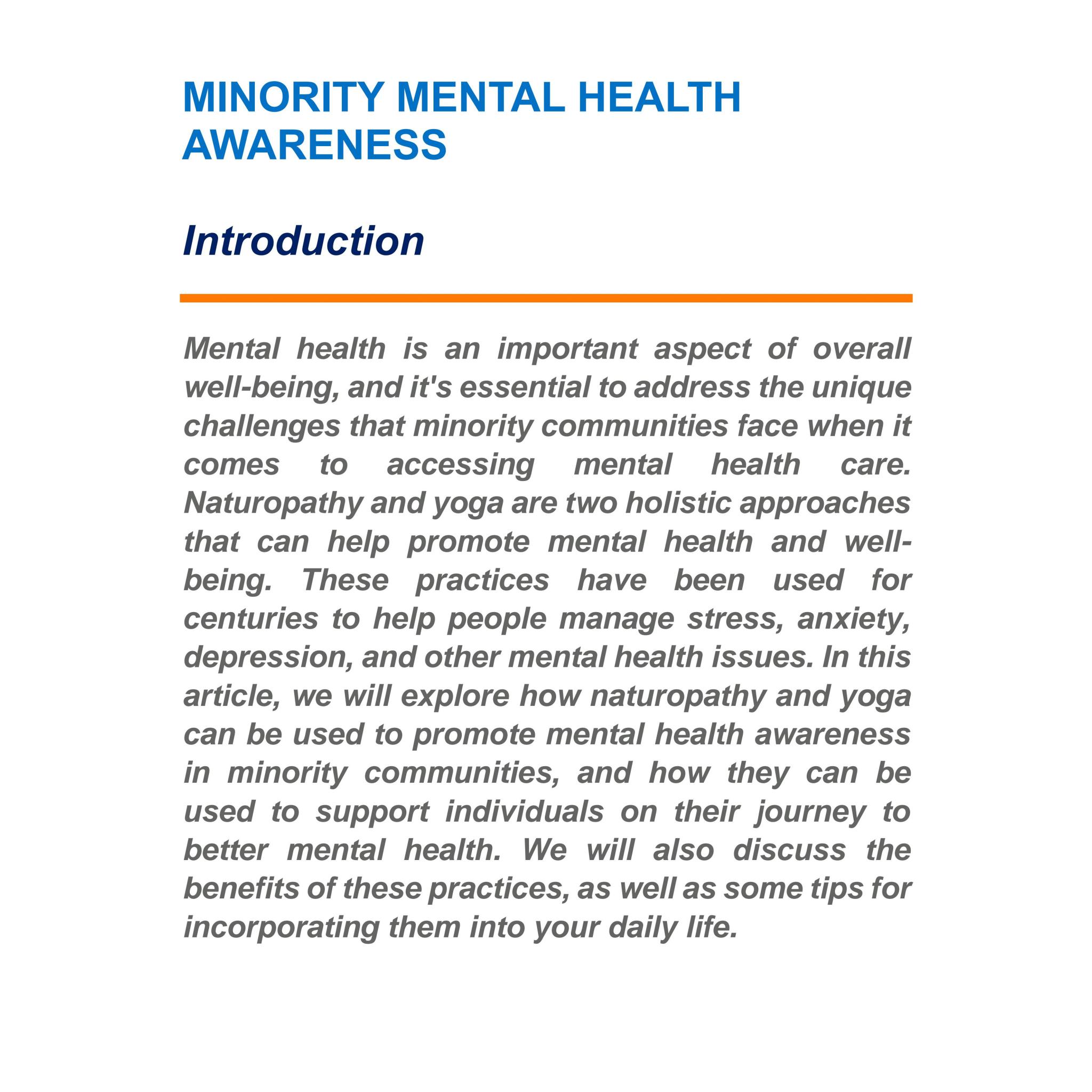 Article about Minority Health Awareness through Naturopathy and Yoga by Our student Kanimozhi. A.S, I - BNYS Part -1, Swamy Vivekanandha Naturopathy and Yoga Medical College, Sankagiri, Salem.