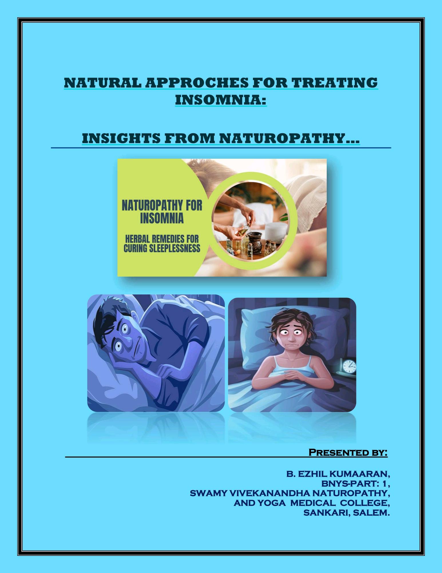 Article about Natural Approaches for treating Insomnia by our Student Ezhil Kumaaran from I -BNYS Part -I, Swamy Vivekanandha Naturopathy and Yoga Medical College, Sankagiri, Salem