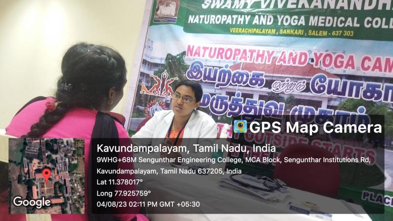 Swamy Vivekanandha Naturopathy and Yoga Medical college & Hospital Sankari, Salem conducted Naturopathy and Yoga Camp at Sengunthar Engineering college, Tiruchengode on 4.8.2023 .Around 50 beneficiaries were consulted and given awareness regarding Naturopathy and Yogic ways of treatment.