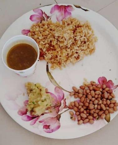 Wednesday's Naturopathy Lunch of SVNYMC students - Boiled diet - Sweet Poha coconut jaggery, Boiled groundnuts ,Potato smash and Mix Vegetable Soup - "Practicing what we preach