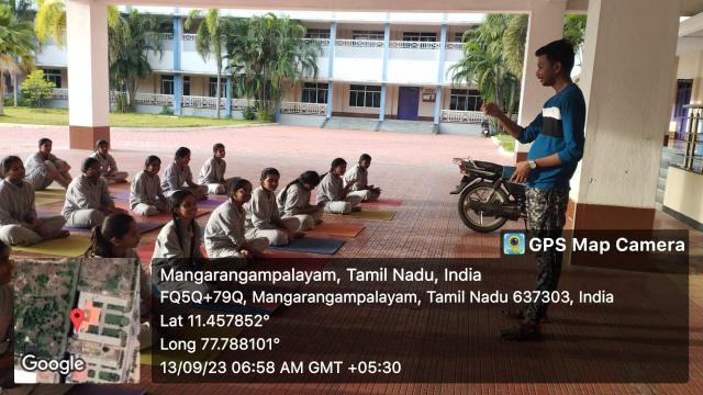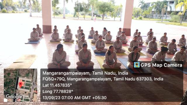 Swamy Vivekanandha Naturopathy & Yoga Medical College, Sankagiri, Salem celebrated International Yoga day 2023 by conducting Mass Yoga Protocol practice session for the students and Faculties of Vivekanandha College of Engineering for Women, Elaiyampalayam, Tiruchengode.