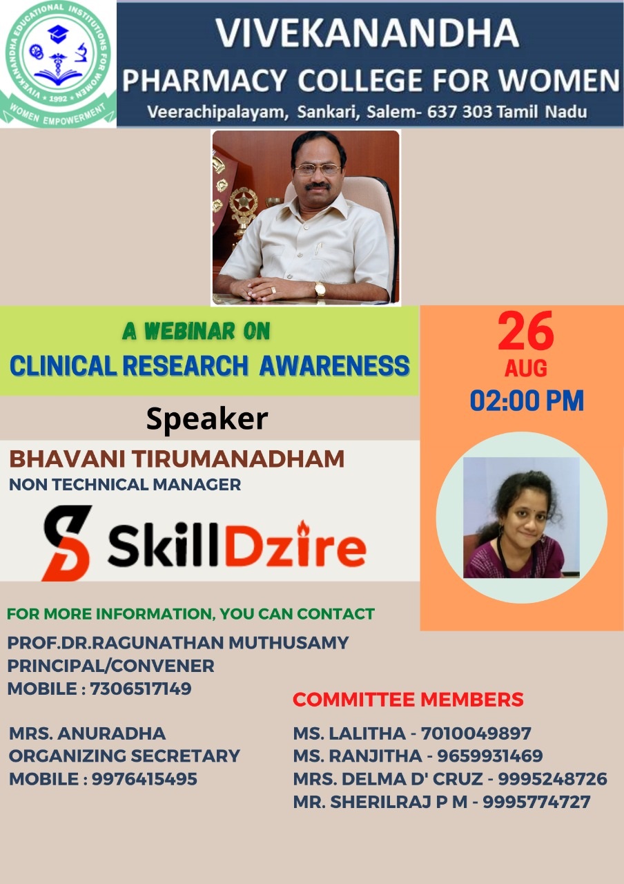 | 11 | Clinical research awareness | 26/08/2021 | BHAVANI THIRUMANADHAM Non technical manager SkillDzire |