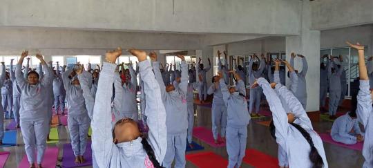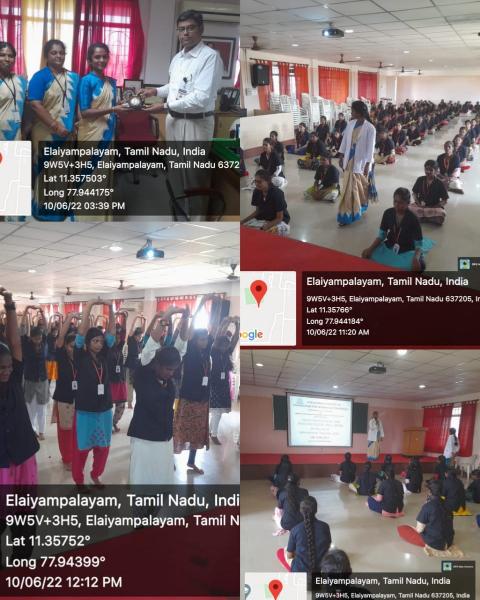 10th June 2022 - Yoga sessions conducted by Dr. Sowntharya and Dr. Saranya on account of International Yoga Day at VCEW, Tiruchengode for 525 students