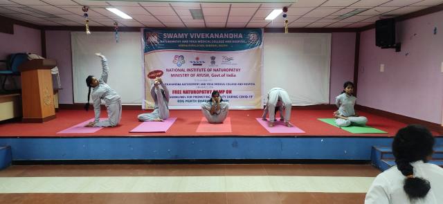 Yoga Day Protocol Practice, Cultural Programme and Yoga Competition conducted in Swamy Vivekanandha Naturopathy and Yoga Medical College Salem on behalf of the celebration of International Yoga Day on 21/6/2022