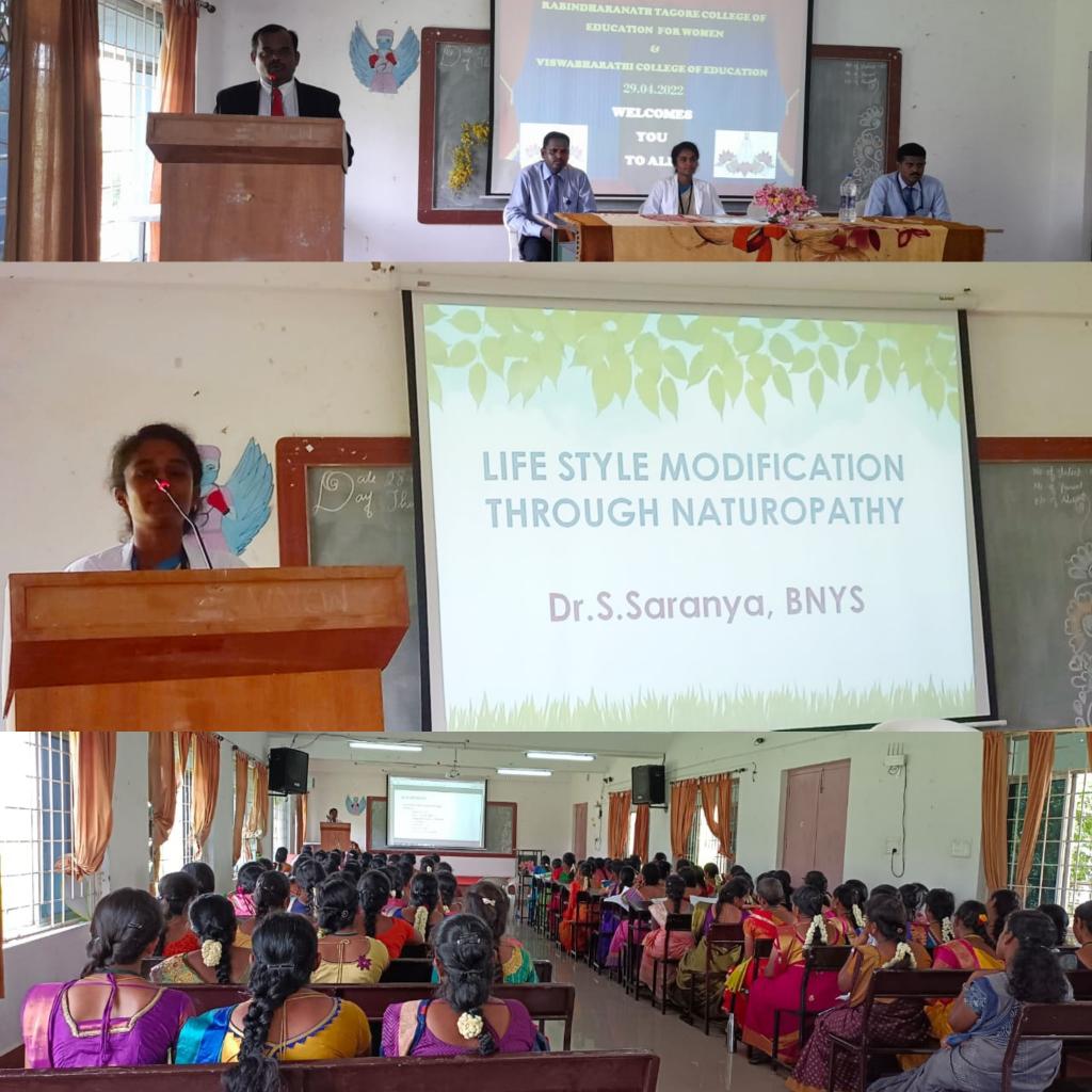 29th April 2022 - Health Talk on "Lifestyle Modification through Naturopathy" given to B.Ed students of Rabindranath Tagore college of Education for Women and Viswabarathi college of Education at Sankari