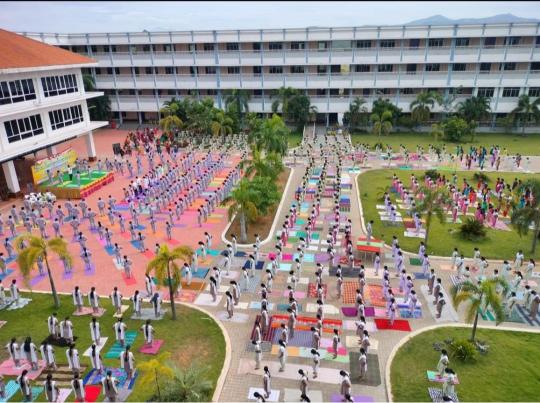 VIDEO - 21/6/22 - Live Mass Yoga performance conducted in Swamy Vivekanandha Naturopathy and Yoga Medical College Salem on behalf of International Yoga Day 2022