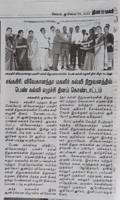 25th May 2022 - Free Naturopathy and Yoga Medical Camp conducted at Vivekanandha Arts and Science College for Women, Tiruchengode