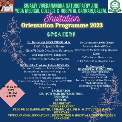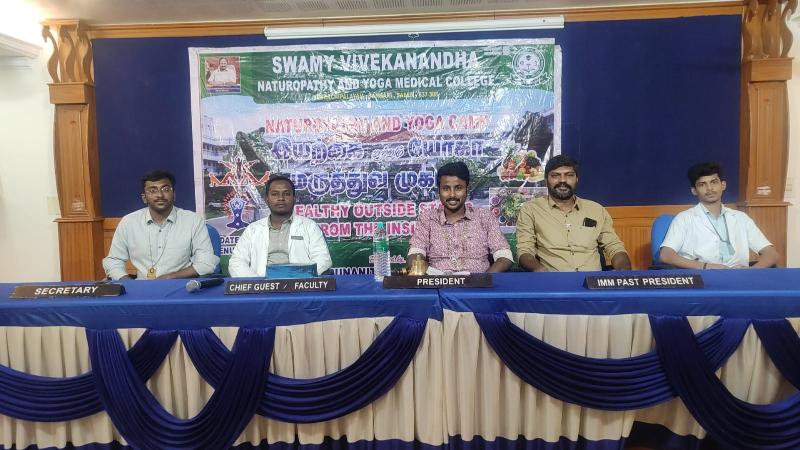Swamy Vivekanandha Naturopathy and Yoga Medical College and Hospital, sangakiri, salem conducted Naturopathy and Yoga Medical camp at JCI Galexy CD Rotary Hall, Erode on 8.6.2023. Around 50 beneficiaries were consulted and treated.
