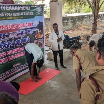 Swamy Vivekanandha Naturopathy and Yoga Medical College and Hospital conducted Free Naturopathy and Yoga Medical Camp at Tiruchangodu fire service station for around 30 beneficiaries