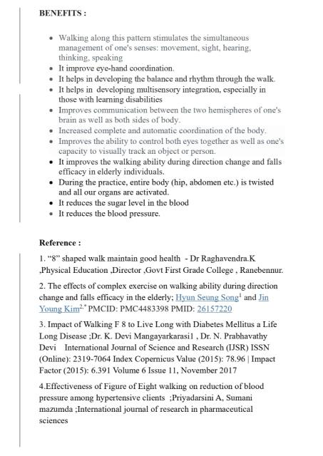 Article about INFINITY WALKING by Dr.M.Poongodi, Assistant Professor cum Medical Officer, Swamy Vivekanandha Naturopathy and Yoga Medical College , Sankari, Salem(dt)