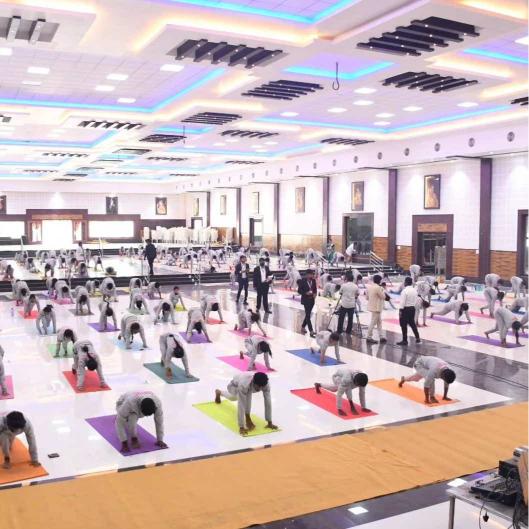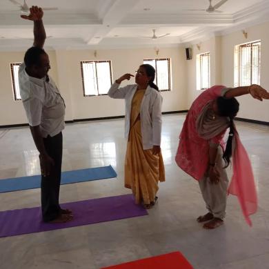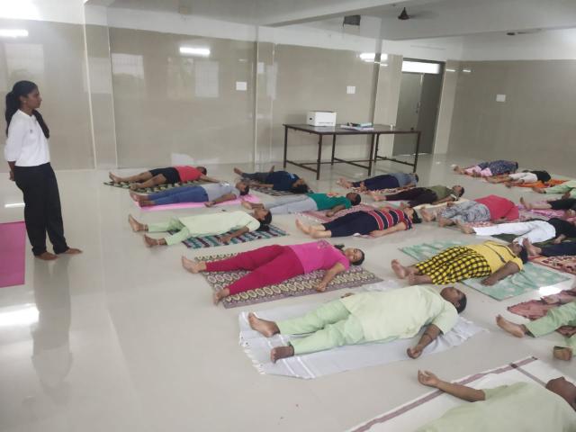 A one and a half hour practise of loosening exercises,Surya namaskaras ,Asanas, Pranayamas,Bandhas, Mudhras and Relaxation techniques were practiced according to the International Yoga Day Protocol 2023