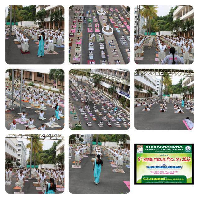 Swamy Vivekanandha Naturopathy & Yoga Medical College, Sankagiri, Salem celebrated International Yoga day 2023 by conducting Mass Yoga Protocol practice session for the students and Faculties of Vivekanandha Pharmacy College for Women, Elayampalayam, Tiruchengode.