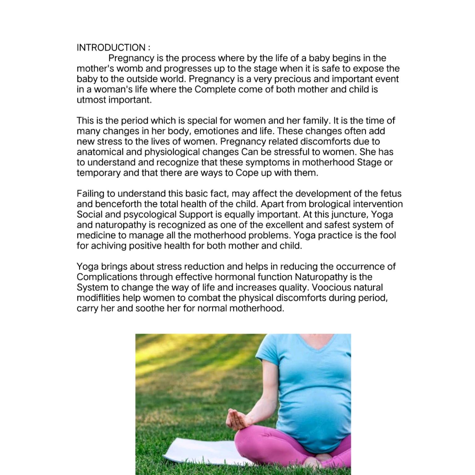 Article about Mother and Child Care through Yoga & Naturopathy by R.Jenitha - BNYS Part -I, Swamy Vivekanandha Naturopathy and Yoga Medical College, Sankagiri, Salem.