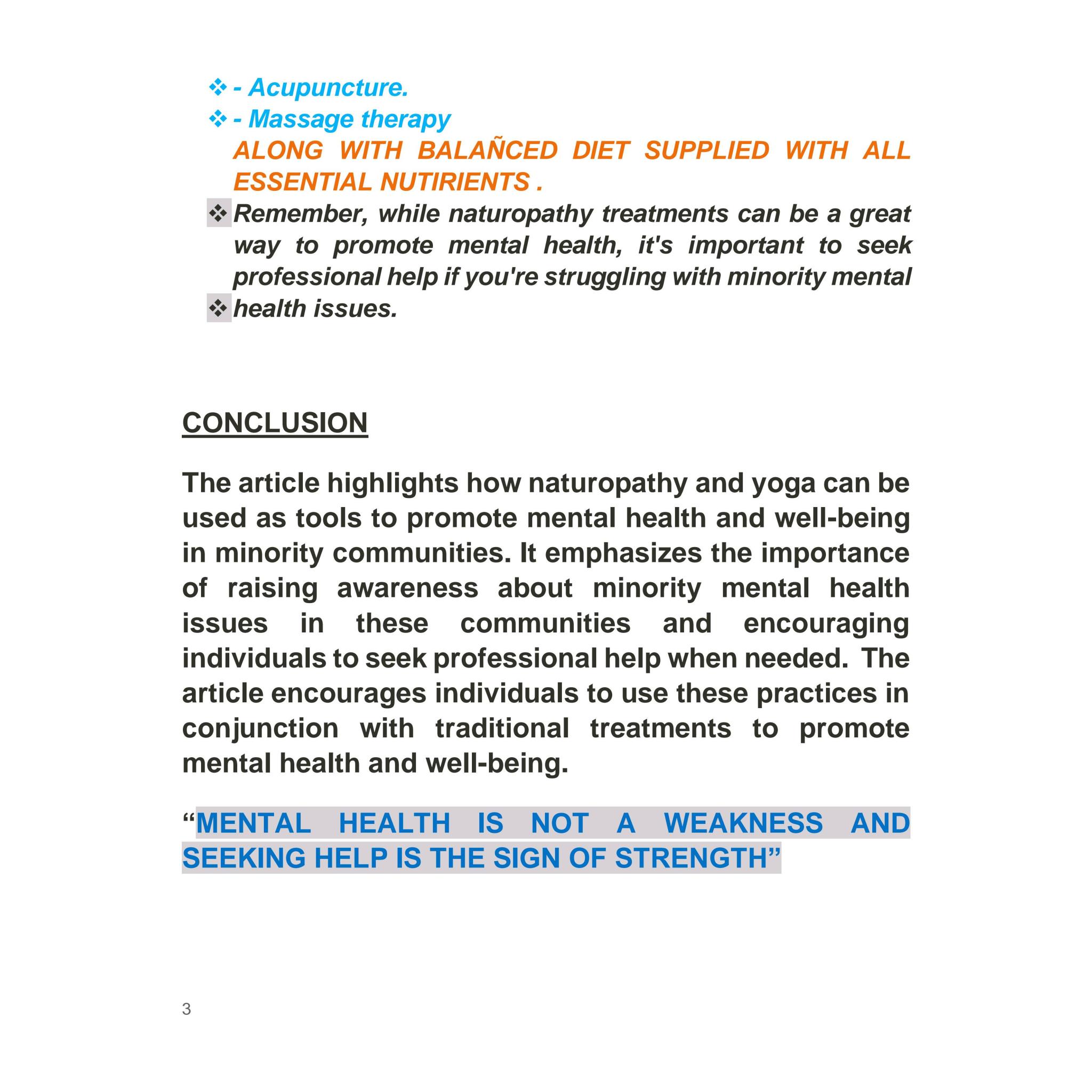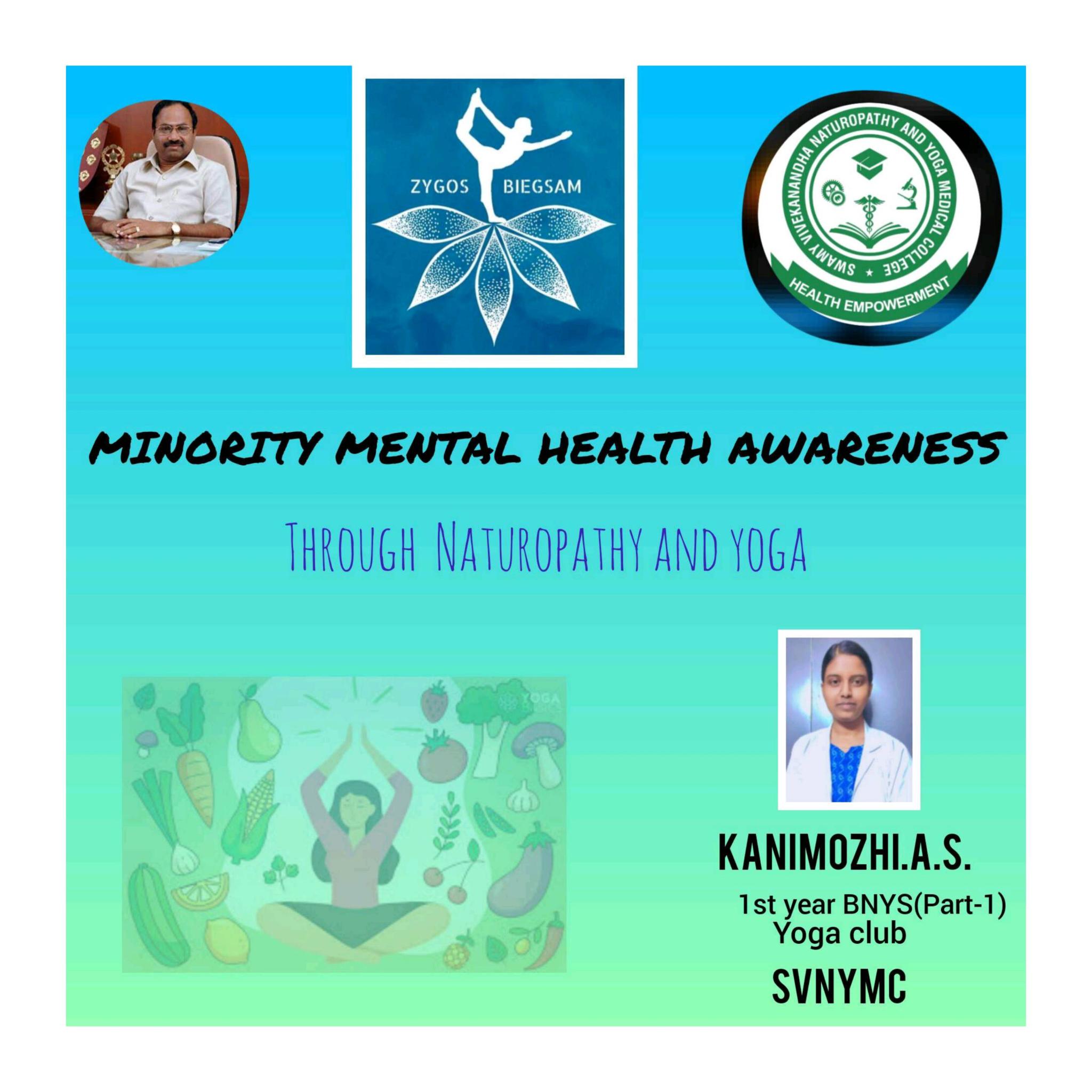Article about Minority Health Awareness through Naturopathy and Yoga by Our student Kanimozhi. A.S, I - BNYS Part -1, Swamy Vivekanandha Naturopathy and Yoga Medical College, Sankagiri, Salem.