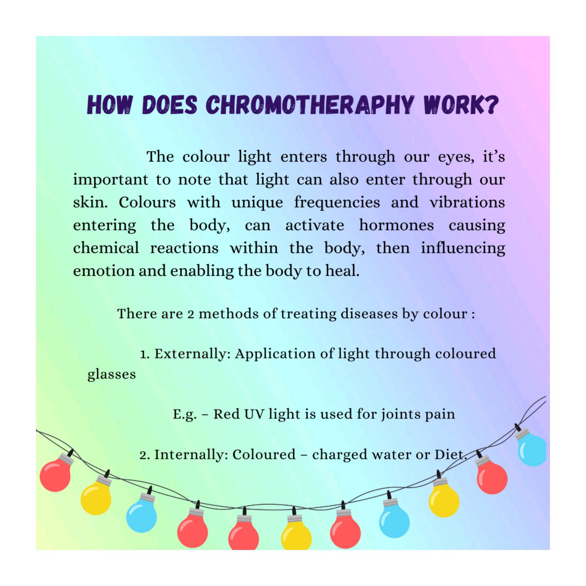 Chromo Therapy article by Dharanya.G - BNYS 1st year part 1 - Swamy Vivekanandha Naturopathy and Yoga Medical College, Sankari, Salem