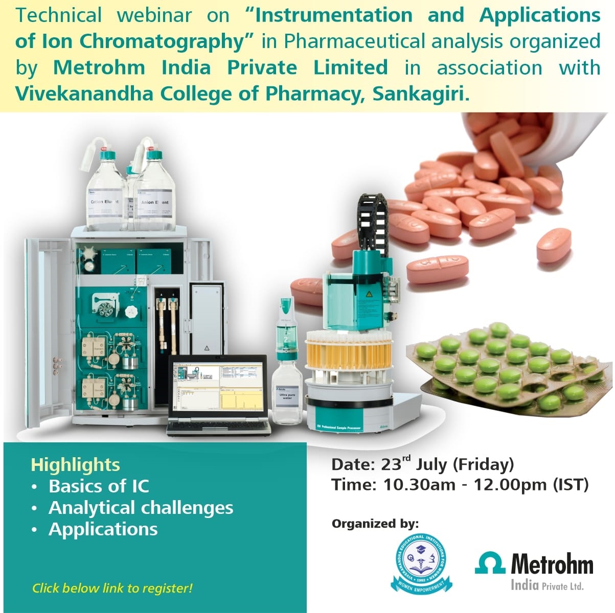 | 7 | Instrumentation and application of ion chromatography | 23/07/2021 | Mr.NIRANJAN KOTHANDARAMAN METROHM INDIA |