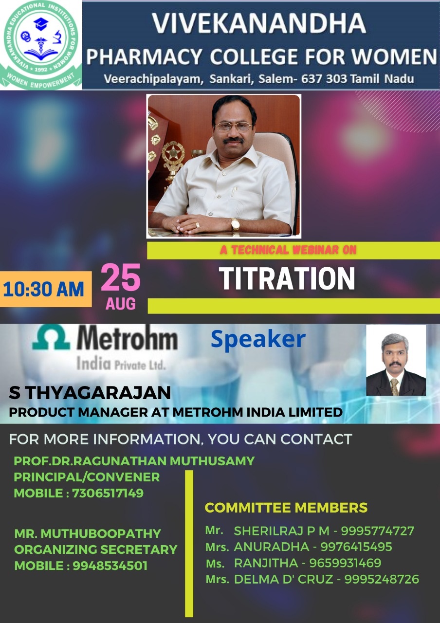 | 10 | Titration | 28/08/2021 | S THYAGARAJAN Product manager METROHM INDIA |